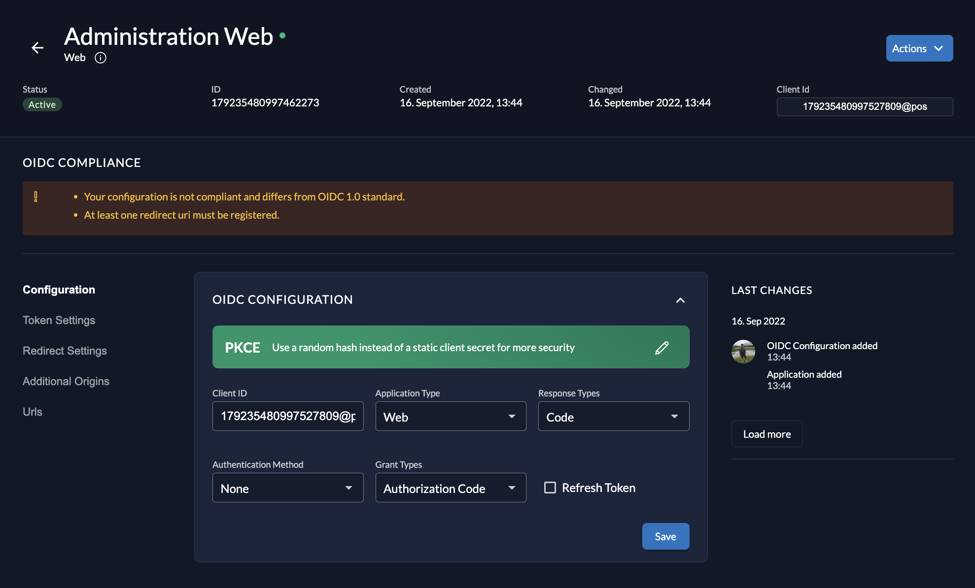 - OIDC Compliance: The Console checks if your configuration is OIDC compliant and shows tasks for completion if anything is missing.